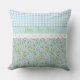 Apple Blossom Floral, Blue Check Gingham and Lace Throw Pillow
