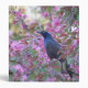 Gorgeous blue and black grackle perched on a branch amid beautiful pink crab apple blossoms in full bloom. A lovely gift for yourself or someone special!