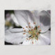 An apple blossom flower with delicate white petals and orange-tipped stamen, heavy with pollen. In the language of flowers, apple blossom indicates better things to come or good fortune.