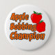 Apple Bobbing Champion fun button featuring cartoon apples. Every child loves to bob for apples! Give the winner or winners a huge button and put a smile on a boy or girl's face at your next Halloween or Autumn party. Perfect for October birthday parties!