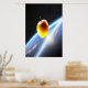 Une pomme rouge et jaune dans l'espace avec l'espace et une planète dans l'arrière - plan. C'est un art généré par l'IA.