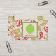 Un carte de visite de professeur comportant une illustration d'une pomme verte à l'intérieur d'un carré avec l'équilibre vert sur l'avant. L'arrière - plan sur l'avant et le dos est Paisley rose et vert. Personnalisez le texte sur l'avant et le dos.