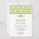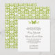 A fresh apple green and white butterfly damask pattern adds a touch of whimsy to these wedding invitations with a dark brown font. Studios, LLC.
