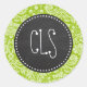 Apple Green Damask Pattern; Chalkboard Classic Round Sticker