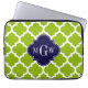 Apple Green Wt Moroccan #5 Navy 3 Initial Monogram Laptop Sleeve