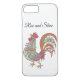 Apple iPhone 8/7 case shown in a colourful chicken/rooster design. Pink and pastel colour tones. Text reads "Rise and Shine". Customize or buy as is.