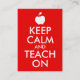 Red white customizable apple shape "Keep Calm and Teach On" parody design for teachers based on the classic poster. You can delete the contact information on back or change the font size and style.