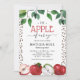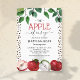 Sophisticated apple themed birthday invitations featuring watercolor foliage and apples, a seed border, and a modern "the apple of our eye" birthday celebration template that is easy to customize.