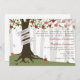 Une invitation mariage de automne illustrant un verger de pommiers aux pommes rouges. Personnalisez avec vos noms sur la bannière couvrant le tronc d'arbre. L'expression est celle des parents de la mariée.