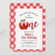 Apple Pink Bow preppy Coquette 1st birthday Invitation