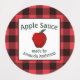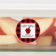 A graphic illustration of a red apples on a preserves label. This label has customizable templates for your text. Original artwork by artist/designer Charmaine Paulson