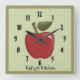 Do you have an apple theme in your kitchen, if so then this clock is for you. The TEXT can be customized with your own name or saying.