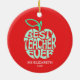 Apple Typography Christmas Best Teacher Ever Ceramic Ornament