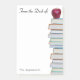 These notes feature a stack of school books with an apple on top on the right side. Text reads "From the desk of" along with a name to personalize. Makes a great gift for teachers or students.