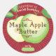 Sliced green apples with leaves on this cute fruit home canning label for your applesauce, butters, and pie filling, featuring a white lattice or lace background and personalized with you text, name, and choice of background colour.