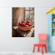 This vibrant impressionist painting captures a basket of freshly picked apples bathed in warm sunlight from a nearby window. The rich red hues of the apples contrast beautifully with the soft, natural light, creating a sense of warmth and abundance. Inspired by Impressionism mastery of light and texture, this artwork brings a touch of nature’s beauty into any room, making it perfect for kitchen decor or rustic living spaces. The soft brushstrokes and glowing colours evoke feelings of simplicity and calm, making it an ideal choice for art lovers and those who appreciate the beauty of everyday life. Available in multiple formats for versatile decor options.