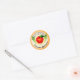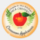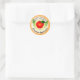 Red apple with wings and faux sparkling stars on this "homemade by", "from the kitchen of" gift tag stickers or canning labels, personalized with your text, name, and choice of background colour, perfect for putting the finishing touch on your homemade foods, sweets, and treats.
