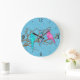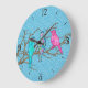 Applique Birds on a Branch, Sky Blue Multi Large C Large Clock