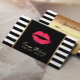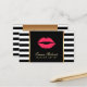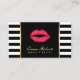 Makeup Artist Red Lips Modern Black White Stripes Appointment Cards.