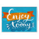 Appréciez aujourd'hui - la citation positive, la calligraphie manuscrite sur l'arrière - plan grunge bleu et le ruban d'orange. Dirigez la conception de typographie pour les cartes, le T-shirt, les affiches et le contenu social de médias. | Bigstock® - tous droits réservés.