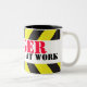 Tasse junior audacieuse de travailleurs de la construction de garçon de thé d'amusement. Un cadeau parfait d'amusement pour de nouveaux démarreurs dans les bureaux ou sur le chantier de construction, lit l'apprenti de danger au travail ou customise avec les mots de votre choix. Conception de Sarah Trett.