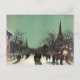 19th century winter evening street scene, with snow horse, sleighs, churches and people walking and entering a church. Copyright 1877, Published and Printed by Joseph Hoover, Philadelphia, Pendsylvania.