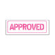 Approved pink office Self-inking rubber stamp. Handy official documents and private papers. Personalized school and office supplies. Stylish border logo and vintage typography template. Custom sign stamps for teacher, office worker, business employee, coworker, boss, corporate company manager, job, staff, personnel, etc. Red and green ink also available.