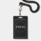 Modèle métal or et noir Presse Insigne événement. Remplacez par votre nom et votre date d'événement. Cette version est livrée avec une nacelle, mais vous pouvez choisir votre style de pièce jointe qui comprend, longe, clip métallique ou rétractable, ou aucune pièce jointe.