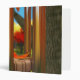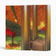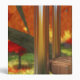 Après le vent, une seule feuille tombée se trouve là où elle est tombée sur un vent silencieux. Sur le sol sous l'herbe encore verte est recouvert de feuilles jaunes et rouges. Dans l'arrière - plan un verger d'automne crammson et or reflète ses couleurs dans les barres d'argent de la chaux.