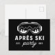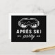 Apres ski party mountain girls trip drinks funny skiing winter cabin lodge chalet night black and white chic aesthetic sport theme gift small print card invitation invite postcard.