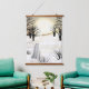 The polyester fabric displayed many wrinkles and several sharp creases throughout. At the bottom of the tapestry, I noticed a bulge in the fabric because it was not pulled tight enough before being connected to the wooden boards. It took me over an hour to spay water on the tapestry before putting it on an ironing board where I used a warm iron over a polyester cloth to remove the wrinkles and creases in the material. I was able to get out the wrinkles and creases that made that tapestry look as beautiful as its picture.