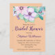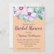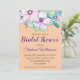 A colourful and pretty apricot bridal shower announcement with a floral theme. The top of the card features a lovely floral arrangement of pastel coloured flowers and purple berries. The same floral arrangement is on the reverse of the card. All details can be personalized easily to suit.