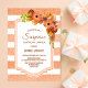Apricot faux glitter striped floral surprise birthday dinner party invitation.