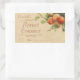 A vintage style label for jams and jellies with an illustration of orange yellow apricots on a branch with green leaves, made from an old postcard painting, with brown coloured scrolls and text. The date can be left for writing the date, or change the dotted text to the year you require.