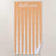 Pink Asymmetrical stripes to create a faux pleat effect. Triangular stripes meet to become a solid colour on the opposite end of the towel. Shown in apricot peach orange and white. Can be customized with the colour of your choice with white using the edit options. Personalize with your name or message in white fancy script font.