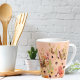 This floral latte mug is adorned with a captivating apricot-colored background with a watercolor flower garden, featuring the timeless beauty of roses and poppies. Every sip from this mug is a journey through a picturesque meadow, where the flowers are a symphony of cheerful colors.