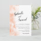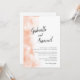 This elegant wedding invitation features a stylish calligraphy for the names of the bride and groom. The modern invite is accented with a apricot coloured watercolor along the left edge.