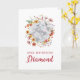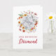 Sparkle and shine for April birthdays with our card featuring the brilliance of the diamond birthstone nestled within a wreath of delicate wildflowers. This card is a tribute to the timeless beauty and strength symbolized by the diamond. A perfect choice for those celebrating an April birthday, combining the everlasting allure of diamonds with heartfelt birthday wishes.