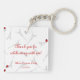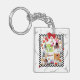 Square double-sided acrylic keychain with an image of lovely ladies sitting at a cafe in Paris enjoying a lovely April day in a black and white chequerboard frame adorned with a red bow and a few ladybugs on a washed out image of black Eiffel Towers on white. The back has the washed out image of black Eiffel Towers on white with a few ladybugs and optional text. See the entire Cancan Keychain collection in the PARTY FAVORS section.