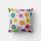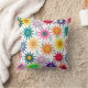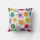 This throw pillow has a design of flowers and raindrops on a white background.