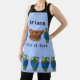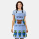 Potter at Work apron with a medium blue background, a potter wheel and pretty blue pots. The name on the apron can be changed. Thanks to Pixabay for some of the elements in the design.