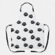 Paw prints of a polydactyl cat. Front paws, right and left, each with seven toes. A set of prints is tiled over entire apron.