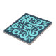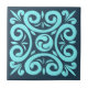 Aqua and Black on Blue Intricate Floral pattern Tile
