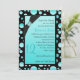 This fun and funky aqua blue, black and white Bat Mitzvah invitation has a PRINTED ON ribbon with a diamonds and gemstone brooch on it. Existing matching items are shown below. Email niteowlstudio@gmail.com if you have any requests for matching items.