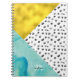 Personalized notebooks featuring a fun black and white watercolor dots with teal and gold accents.