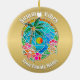 Aqua and Gold Ocean Palm Tree Summer Landscape Ceramic Ornament
