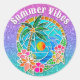 Aqua and Gold Ocean Palm Tree Summer Landscape Classic Round Sticker