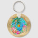 Aqua and Gold Ocean Palm Tree Summer Landscape Keychain