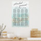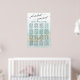 This aqua and gold watercolor beach seating chart poster is perfect for a tropical destination wedding. The simple and modern design features stunning turquoise, teal and light blue watercolor with a soft gold sparkle reminiscent of the sand and sea. It's paired with gorgeous elegant calligraphy. This wedding poster includes enough room for up to 16 tables (160 guests). In addition to the placement of each guest, personalize this sign with the names of the bride and groom and the wedding date. This seating chart can be used for a wedding reception or any special event.