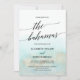 This aqua and gold watercolor beach Bahamas wedding invitation is perfect for a tropical destination wedding. The simple and modern design features stunning turquoise, teal and light blue watercolor with a soft gold sparkle reminiscent of the sand and sea. It's paired with gorgeous elegant calligraphy.